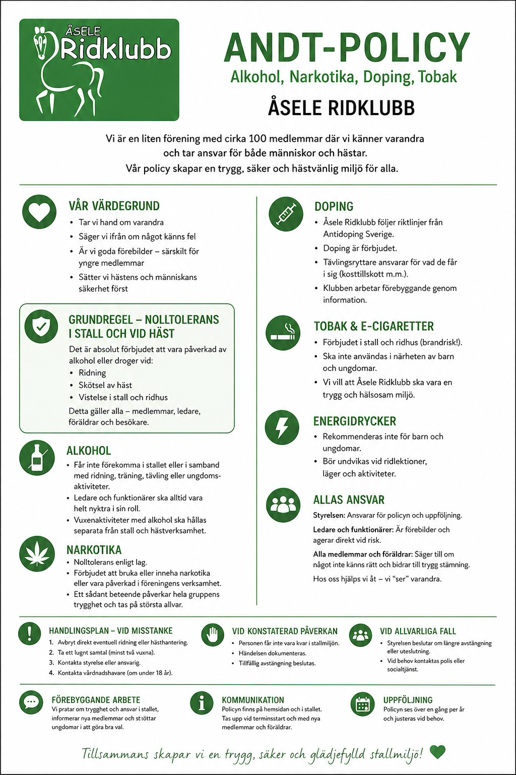 Ridskola & medlemsavgift , Priser